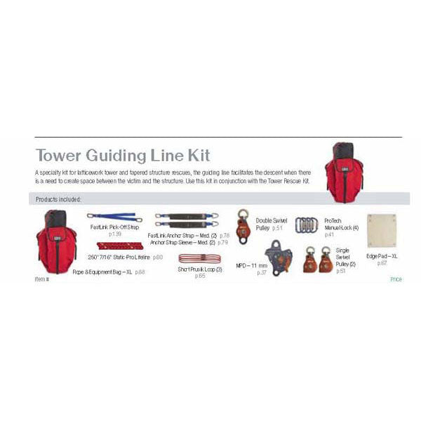 A specialty kit for latticework tower and tapered structure rescues, the guiding line facilitates the descent when there is a need to create space between the victim and the structure. Use this kit in conjunction with the Tower Rescue Kit.